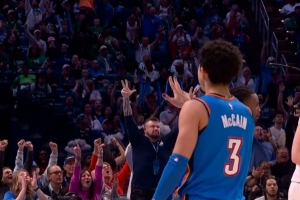 GIF-卡鲁索抢断助攻麦凯恩追身三分命中