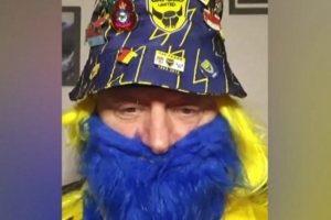 他称:“这一切开始于圣诞节前的一个玩笑,当时我们已经等了600天……然后我就开始戴上了这个装扮。后来有人建议我应该为这个举动找赞助商,于是我想,为什么不为乔伊·比查姆普基金会筹集一些资金呢?”