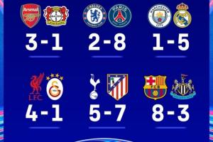 至此,英超本赛季参加欧战的九支球队在本轮后的命运也均已揭晓,其中五队挺进下一轮,出局的四队均是欧冠赛场折戟。