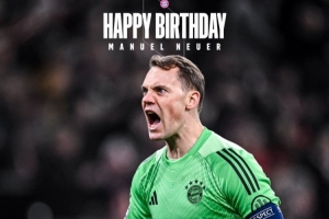 体育资讯3月27日讯 诺伊尔迎来40岁生日,拜仁官方为他庆生。