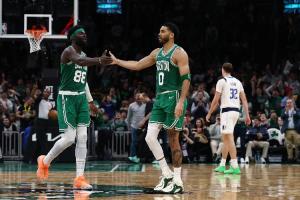 谈及队友奎塔,塔图姆说道:“我们在比赛中简单聊了聊,大概就是说:‘兄弟,这是我们第一次真正一起打球。’真的很开心,我们一起享受了那个时刻。他跟我说了一些他在场上观察到的东西,还有我们之后该怎么更好地建立默契。”