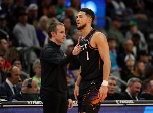 布克全场出战35分20秒,21投10中(三分12中5)、罚球8中7,轰下全场最高32分外加4篮板4助攻2抢断,4次失误瑕不掩瑜,正负值+1。